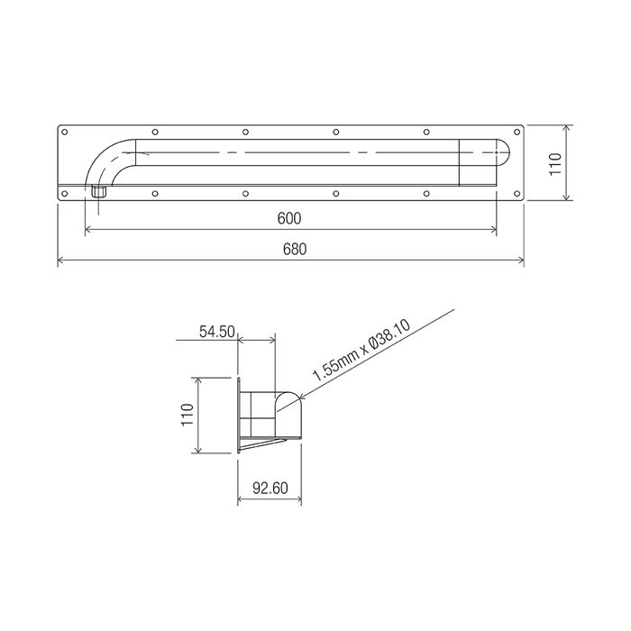 Anti-Ligature Horizontal Rail SS 600mm - LH
