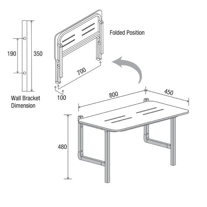 • 800mm x 450mm x 480mm folding shower seat