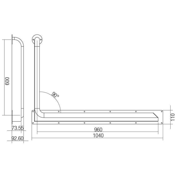 Anti-Ligature Toilet Rail SS 960x600mm - RH