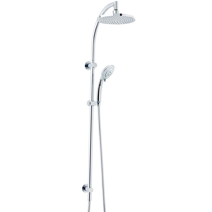 Twin outlet shower system for those persons requiring an overhead and handheld shower combination.