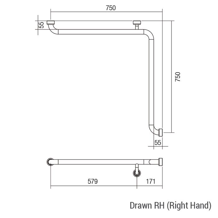 HS Corner Rail SS 750x750mm - RH
