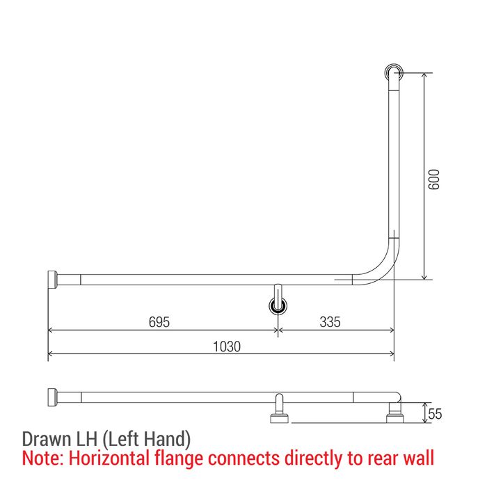HS Toilet Rail SS 1030x600mm - LH