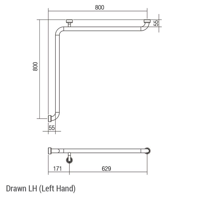 HS Corner Rail WT 800x800mm - LH