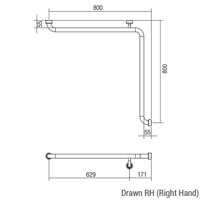 HS Corner Rail WT 800x800mm - RH