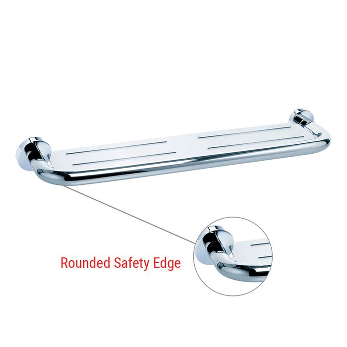 A versatile product, the stainless steel shelf can either be installed over a vanity or inside a shower recess.