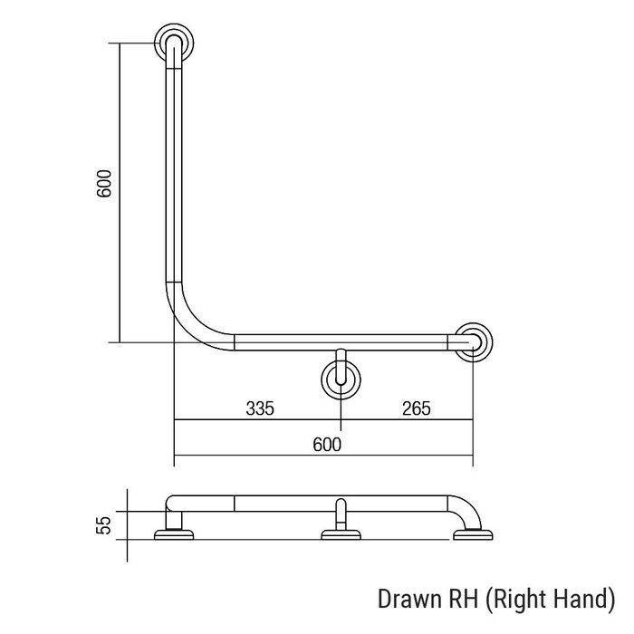 CF Toilet Rail SS 600x600mm - RH