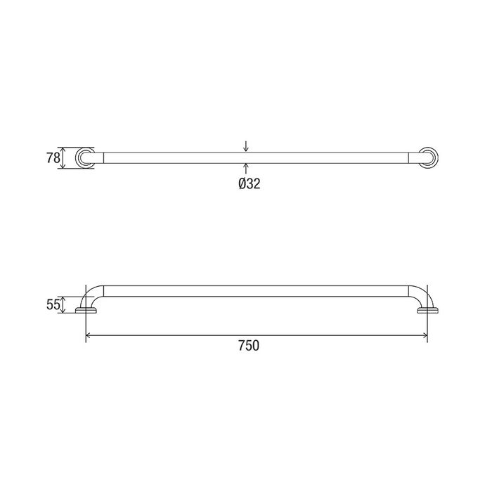 Our standard grab rails are fabricated from 32mm x 1.2mm grade 18/8 stainless steel and assembled with our 78mm domed Clam Flange® cover. This complies with clause 17 of AS 1428.1-2009 for Design and Construction. Available in a variety of finishes, our Clam Flange® grab rails are ideal for domestic and commercial installations.