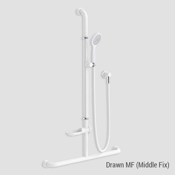 White Handpiece, hose, elbow, slide track and slider with chrome plated components