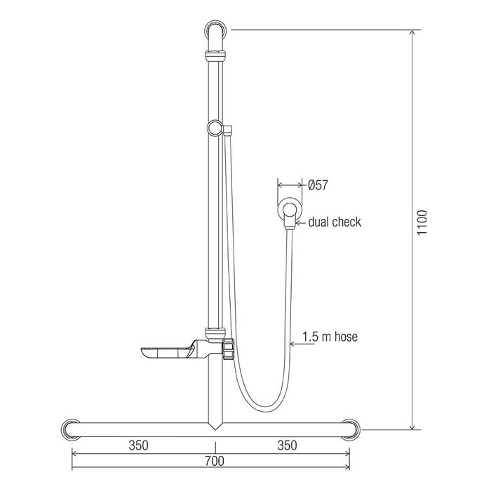 White powder coat 700x1100mm Hygienic Seal grab rail MF (Middle Fix)