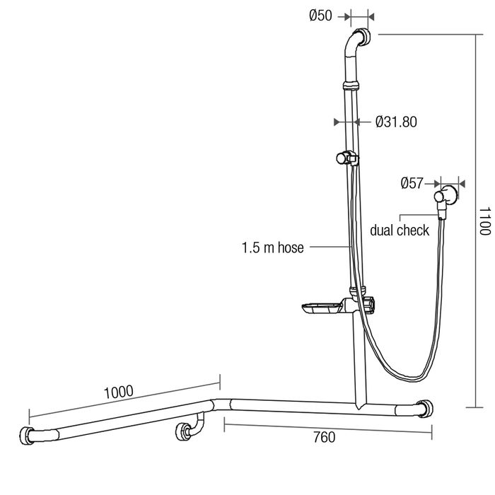 Polish Supreme 760x1000x1100mm Hygienic Seal grab rail RH (Right Hand)