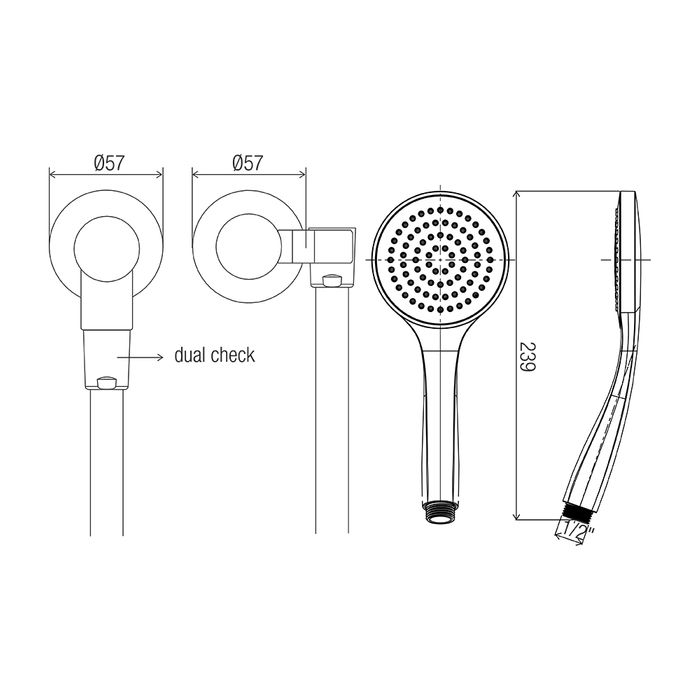 ABS 100mm single function shower with rub-clean spray diffusor