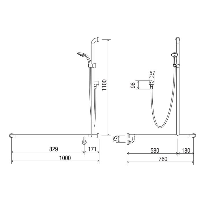 • Satin Supreme™ 760x1000x1100mm Hygienic Seal grab rail RH (Right Hand)