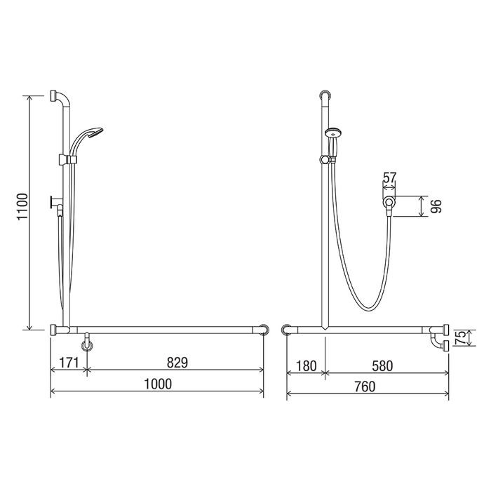 • Satin Supreme™ 760x1000x1100mm Hygienic Seal grab rail LH (Left Hand)