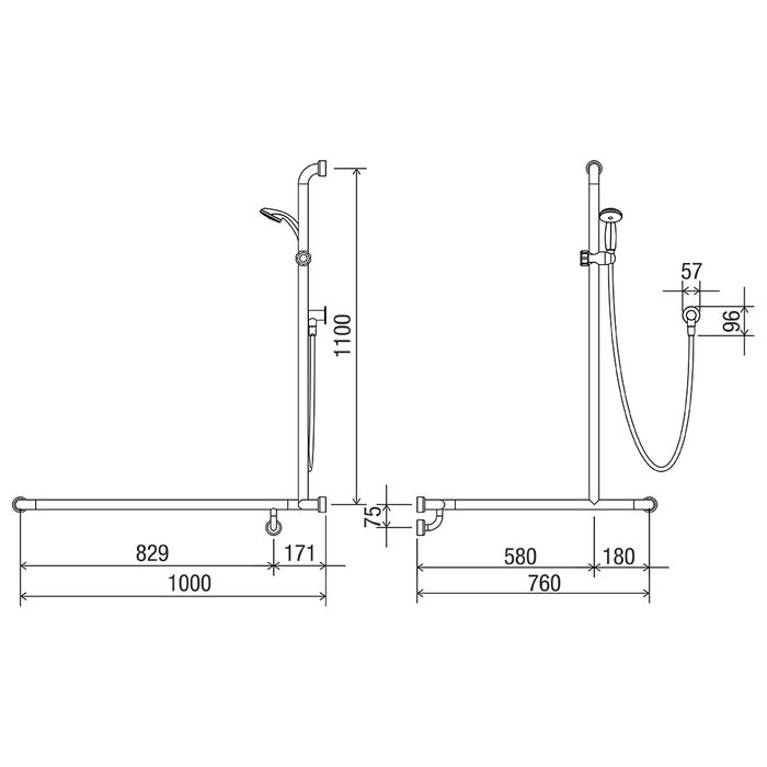 • Satin Supreme™ 760x1000x1100mm Hygienic Seal grab rail RH (Right Hand)