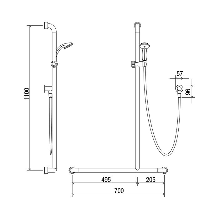 • Satin Supreme™ 700mm x 1100mm Hygienic Seal grab rail RH (Right Hand)