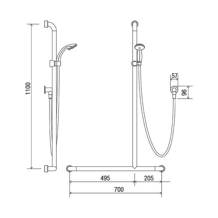 • Satin Supreme™ 700mm x 1100mm Hygienic Seal grab rail RH (Right Hand)