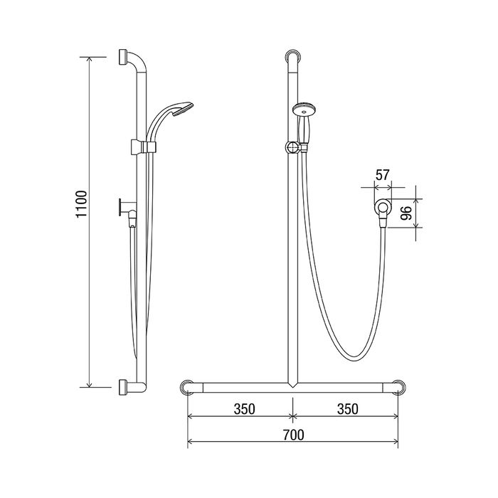 Satin Supreme 700mm x 1100mm Hygienic Seal grab rail MF (Middle Fix)