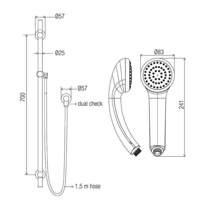 ABS single function shower with rub-clean spray diffusor