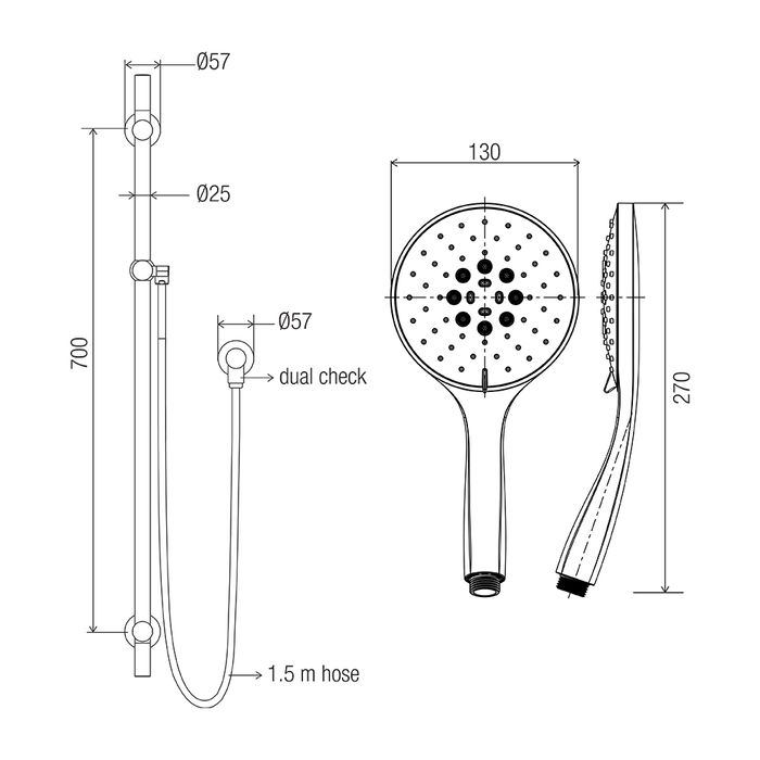 ABS 130 mm multi-functional shower with rub-clean spray diffusor