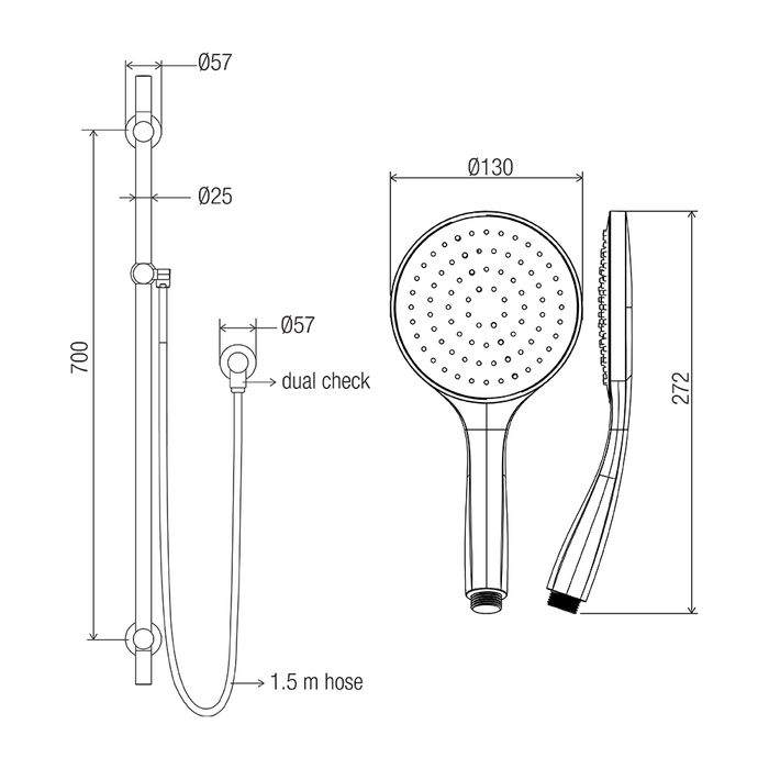 • ABS 130mm XL shower with rub-clean spray diffusor