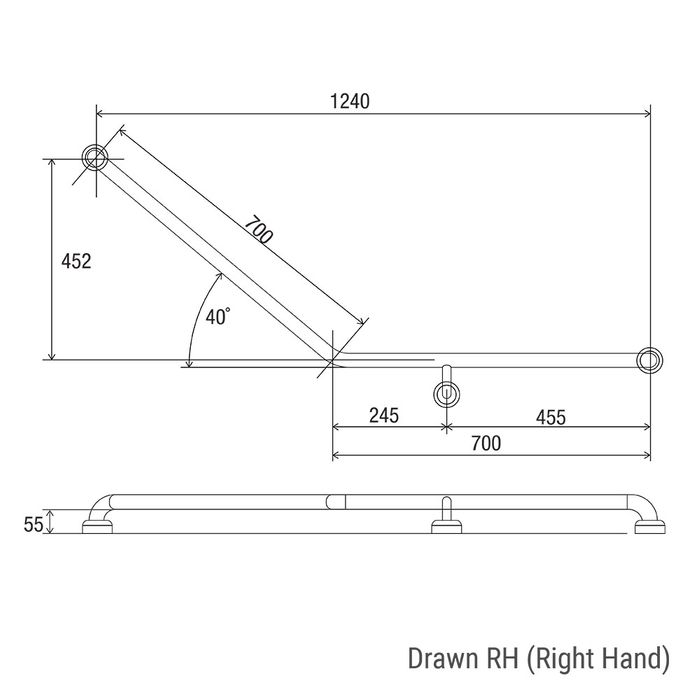 HS Toilet Rail SS 700x700mm - RH