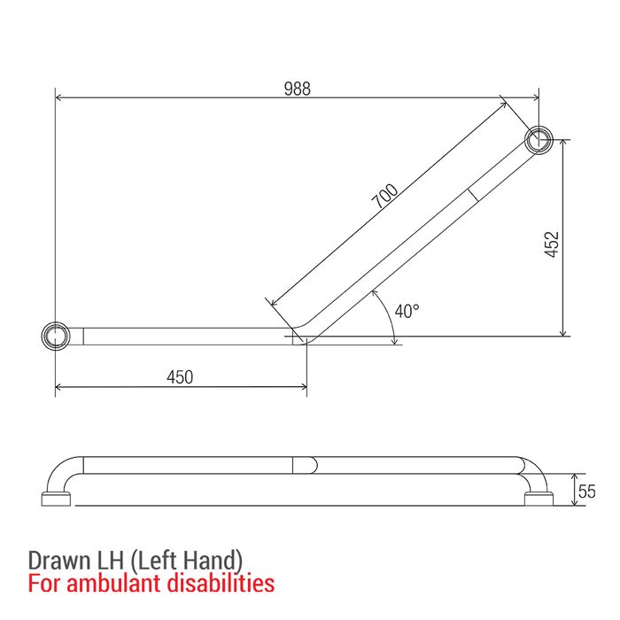 HS Toilet Rail PS 450x700mm - LH