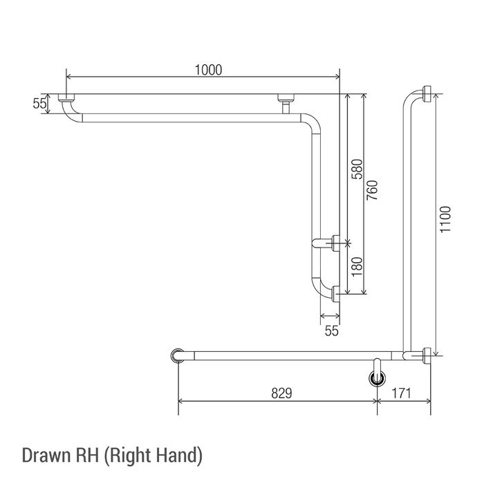 HS Shower Rail WT 760x1000x1100mm - RH