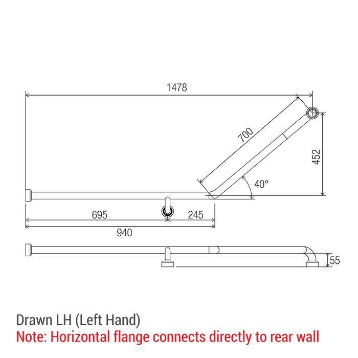 HS Toilet Rail SS 940x700mm - LH