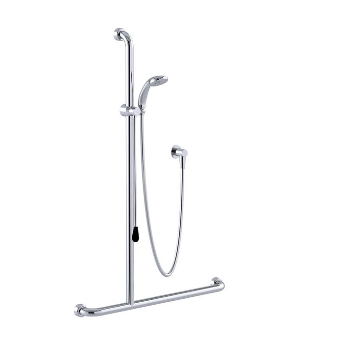 • Brass friction cradle with Push-PullMe® shower rod for seated users
