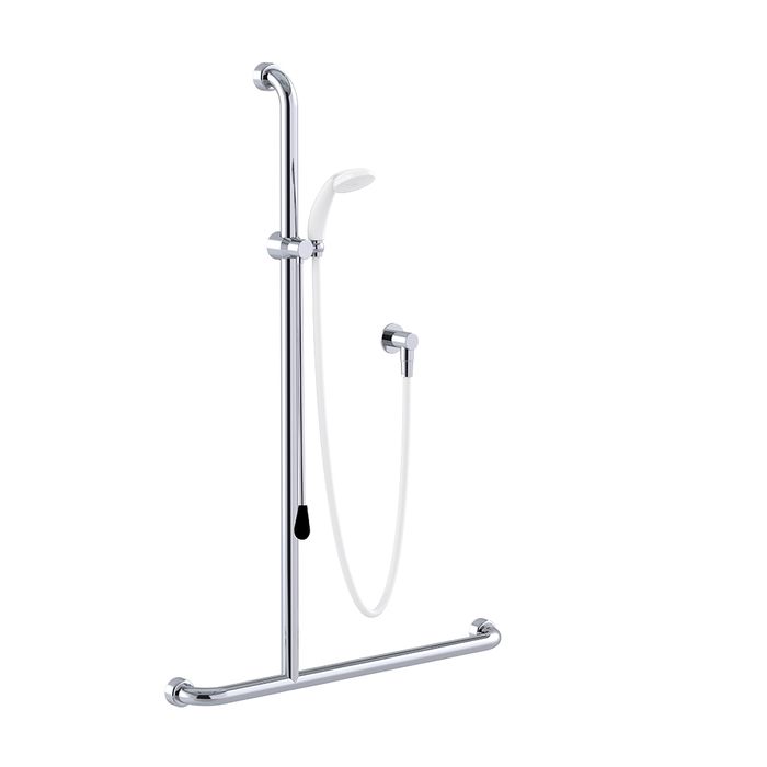 Brass friction cradle with Push-PullMe® shower rod for seated users