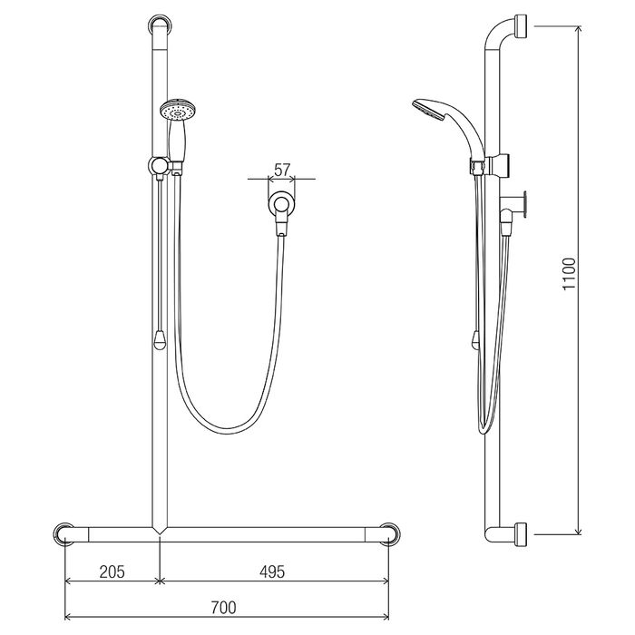 Satin Supreme 700mm x 1100mm Hygienic Seal grab rail LH (Left Hand)