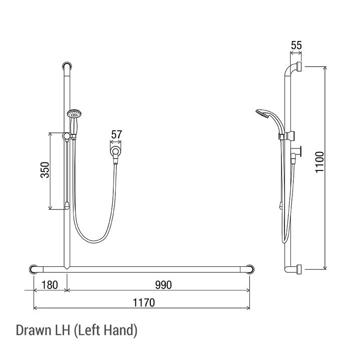 • Satin Supreme™ 1170mm x 1100mm Hygienic Seal grab rail LH (Left Hand)