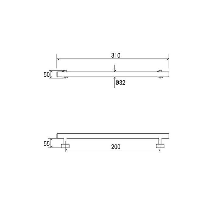 • 200mm Ø to Ø straight grab rail